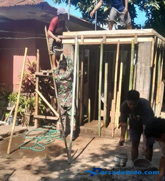 Adonara Timur – Babinsa Koramil 1624-02/Adonara, Praka Muhammad Sidik, melaksanakan kegiatan monitoring wilayah binaan sekaligus terjun langsung membantu masyarakat dalam pembangunan bak air bersih di Desa Karinglamalowuk, Kecamatan Adonara Timur, Rabu (1/10/2025).