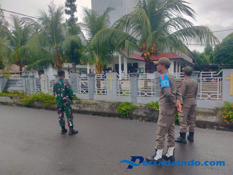 “Pengamanan ibadah misa yang dilakukan untuk memberikan rasa aman dan nyaman bagi umat beribadah. ” Ujar Babinsa Kopda Suhardi