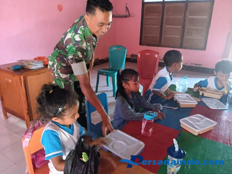 Persadaindo.com – Lembata – Babinsa Koramil 1624 – 03/Lewoleba Sertu Fransiskus Peka mendukung program pemerintah dengan melakukan pendampingan penyaluran Makan Bergizi Gratis (MBG) bagi anak-anak TK st. marieta, Kelurahan Lewoleba, Kecamatan Nubatukan, Kabupaten Lembata. Jumat (16/05/2025)
