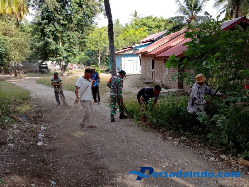 • Babinsa Koramil 1624-05/Solor Bersama Masyarakat Karya Bakti Bersihkan Lingkungan Desa.