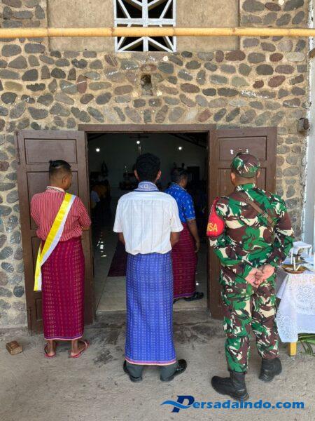 Lembata, Dalam rangka menjaga keamanan dan ketertiban di wilayah binaan, Babinsa Koramil 1624-07/Nagawutung, Praka Marshal Yudha Prasetya, melaksanakan kegiatan monitoring wilayah sekaligus pengamanan pelaksanaan Ibadah Misa Minggu di Gereja Katolik St. Fransiskus Xaverius, Desa Alap Atadei, Kecamatan Wulandoni, Kabupaten Lembata, pada Minggu (12/10/2025).