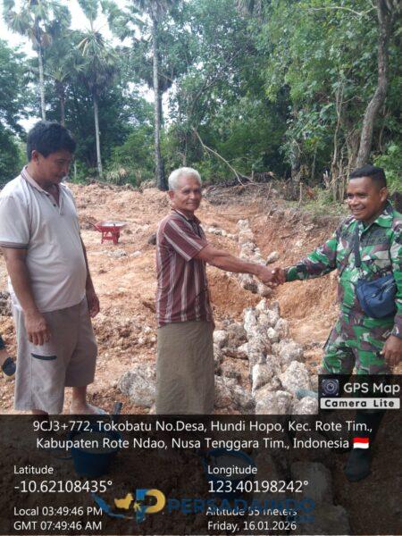 Babinsa Koramil 1627-02/Pantai Baru, Koptu Imran, melaksanakan kegiatan pendampingan pemasangan fondasi lahan KDKMP di Desa Hundihopo, Kecamatan Rote Timur, pada Jumat, 16 Januari 2026. Kegiatan tersebut dimulai sekitar pukul 16.00 Wita dan berlangsung di lokasi pembangunan KDKMP Desa Hundihopo.