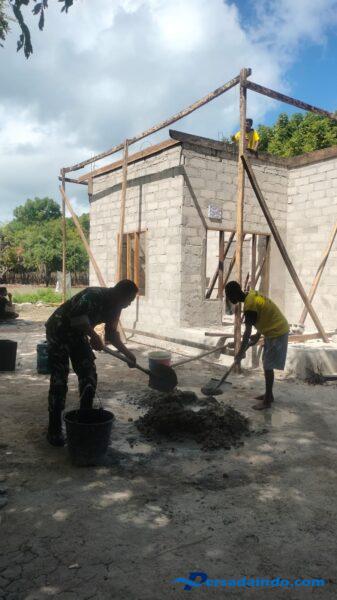 Bertempat di rumah salah seorang warga, Bapak Vinsensius Aplugi, Babinsa bersama masyarakat setempat melaksanakan gotong royong membantu proses pembangunan rumah. Kegiatan ini menjadi wujud nyata kebersamaan antara TNI dan masyarakat dalam membangun desa.