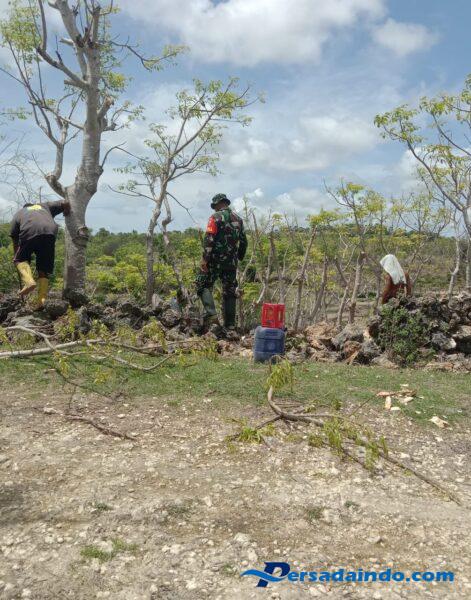 Pada kegiatan tersebut, Babinsa bersama warga melakukan pembangunan dan perbaikan pagar di sekitar lahan persawahan. Salah satu warga yang terlibat, Bapak Hans Dami, turut berpartisipasi bersama kelompok petani lainnya dalam kerja bersama tersebut. Pembuatan pagar dilakukan untuk melindungi areal sawah dari gangguan hewan dan memastikan lahan siap memasuki masa tanam.