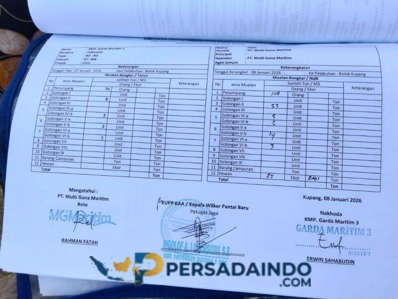 Rote Ndao – Babinsa Koramil 1627/Rote Ndao, Kopka Ferdinan K., melaksanakan kegiatan pengamanan dan pemantauan di Pelabuhan ASDP Pantai Baru, Desa Ofalangga, Kecamatan Pantai Baru, Kabupaten Rote Ndao, Kamis (8/1/2026).