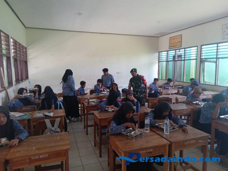 Sumbawa Barat — NTB, Dalam upaya mendukung program pemerintah untuk meningkatkan gizi anak sekolah, Babinsa Kelurahan Kuang, Koramil 1628-01/Taliwang, Serka Bustanuddin turut aktif melakukan pendampingan kegiatan Makan Sehat Bergizi yang dilaksanakan di SMPN 1 Taliwang, Kecamatan Taliwang, Kabupaten Sumbawa Barat, pada Senin (27/10/2025).
