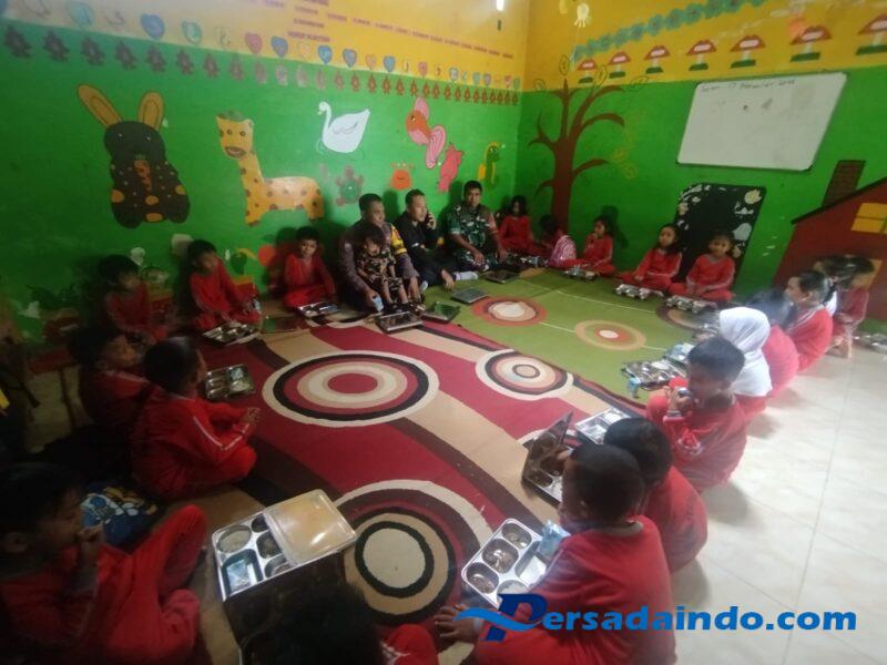 Sumbawa Barat – NTB, Serda A. Rahman, Babinsa Kelurahan Menala dari Koramil 1628/01 Taliwang, melakukan pendampingan kegiatan Makan Sehat Bergizi (MSG) di TK Mulya, Kelurahan Menala, Kecamatan Taliwang, Jum’at pagi pukul 09.00 WITA.