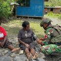 Udara dingin pegunungan di Kampung Yalinggua, Distrik Muara, Kabupaten Puncak Jaya, terasa hangat oleh kepedulian yang ditunjukkan prajurit Satg...