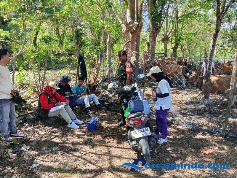 Sumbawa Barat, NTB – Babinsa Koramil 1628-05/Jereweh, Serda Sukardin, melaksanakan pendampingan kegiatan register dan vaksinasi ternak oleh Puskeswan Kecamatan Jereweh di Desa Belo, Rabu (24/09/2025).