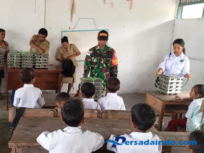 “Kegiatan pendampingan yang dilakukan ini untuk memastikan anak-anak mendapatkan asupan gizi yang cukup guna mendukung pertumbuhan fisik dan perkembangan kemampuan anak-anak dalam berpikir” ucap Serma Marcos Gomes.