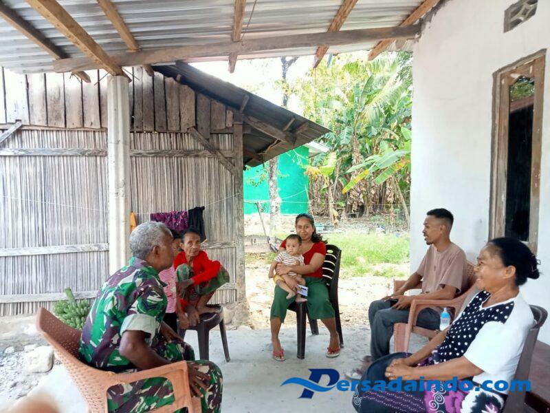 KODIM 1605/BELU, Babinsa Desa Weseben Koramil 1605-09/Biudukfoho Sertu Joao Da Costa dalam melaksanakan tugas pemantauan wilayah desa binaan, berkesempatan melaksanakan kegiatan komsos dengan warga masyarakat di Dusun Kletek, Desa Weseben, Kecamatan Wewiku, Kabupaten Malaka, Jumat (29/8/2025).