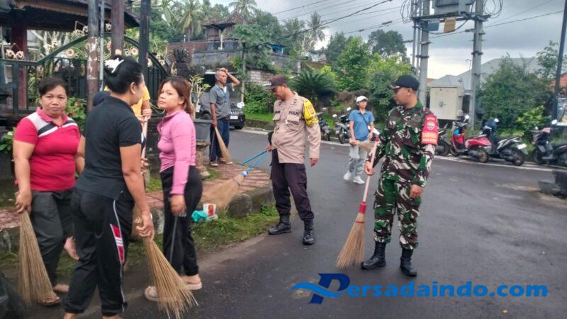 Kegiatan yang dilaksanakan di sepanjang jalan perempatan menuju Kantor Desa Tegak ini mendapat perhatian langsung dari Babinsa Tegak yang terjun langsung berbaur bersma seluruh pihak.