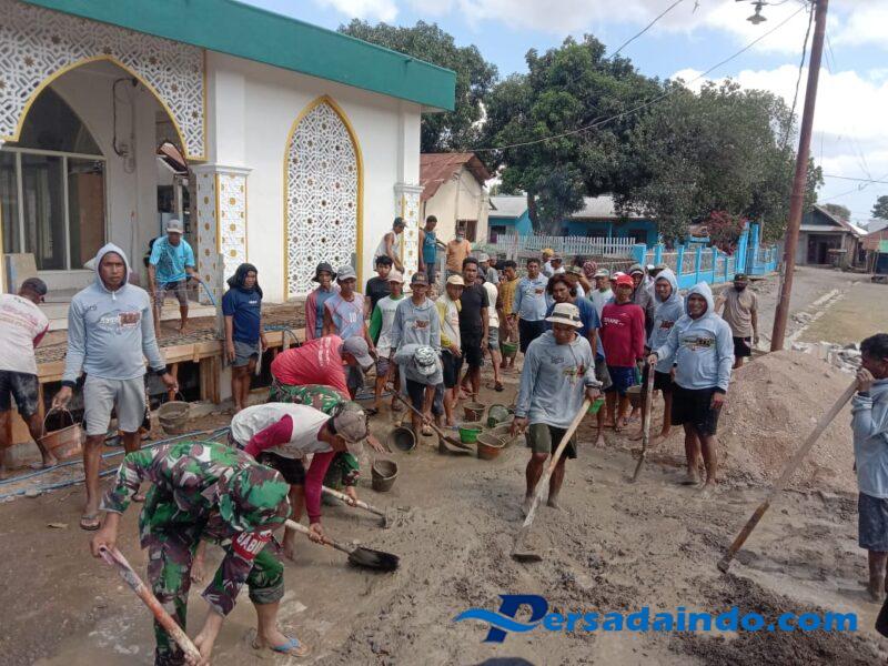 Bima,Monta _ Pada hari Kamis, tanggal 16 Oktober 2025, Serka Suryansah Babinsa Desa Baralau bersama Sertu Sulaiman Babinsa Desa Sakuru Koramil 1608-07/Monta menggerakkan masyarakat melakukan kegiatan gotong royong pengecoran teras Masjid Jami Al-Hasanah di Rt 07 Rw 04 Desa Baralau, Kecamatan Monta, Kabupaten Bima. Kegiatan ini melibatkan 110 warga yang antusias berpartisipasi secara swadaya.