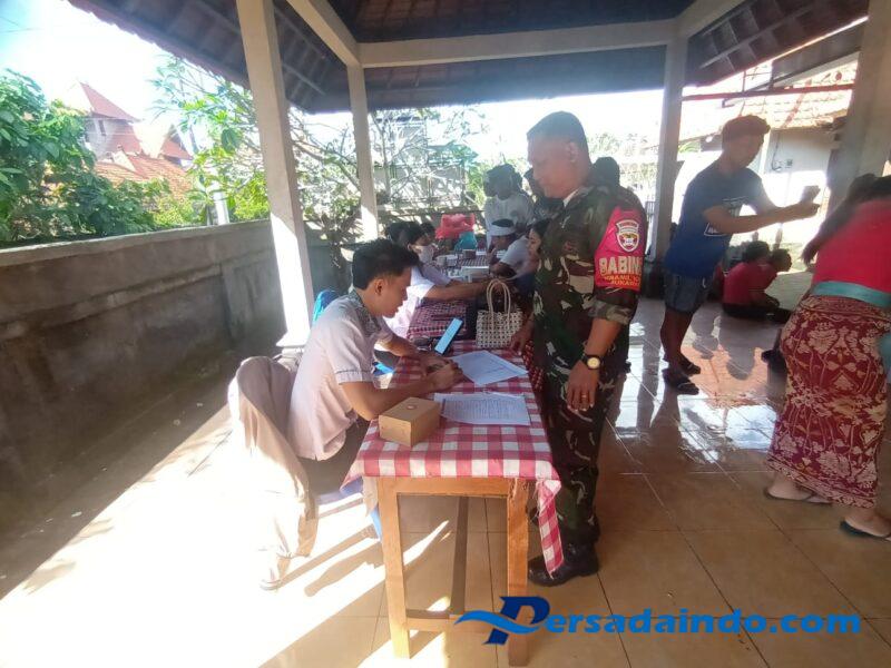 Babinsa Serka I Gede Jayasa menyampaikan bahwa kehadiran TNI dalam kegiatan ini merupakan bentuk nyata dari komitmen mendukung program pemerintah di bidang kesehatan dan memastikan seluruh proses berjalan aman, tertib, serta kondusif.