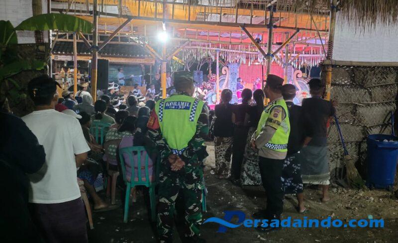 Klungkung,- Babinsa Kutampi Koramil 1610-04/Nusa Penida Serda Nursam Muliadi bersinergi bersama Bhabinkamtibmas dan pecalang melaksanakan pengawalan dan pengamanan pertunjukan Bondres, Senin ( 22/09/25 ) malam.