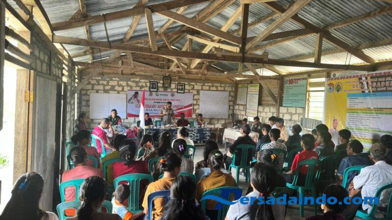 NTT- Sumba Timur, Babinsa Koramil 01/Lewa, Kodim 1601/Sumba Timur, Pratu Aprianus Hapu, menghadiri kegiatan Musyawarah Desa Khusus yang diselenggarakan di Desa NgaduLanggi, Kecamatan Nggaha Ori Angu, Kabupaten Sumba Timur. Rabu (28/05/2025).