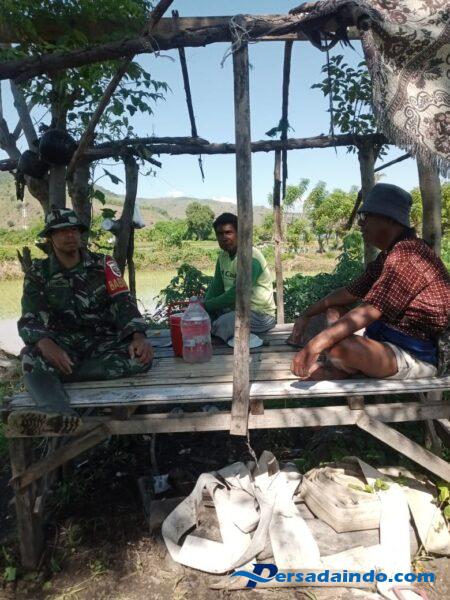 Kegiatan tersebut berlangsung di area pertanian So Pande, yang saat ini tengah memasuki musim tanam kedua. Dalam pertemuan yang berlangsung santai namun penuh semangat itu, Babinsa memberikan motivasi sekaligus ajakan kepada warga untuk terus mengembangkan lahan pertanian secara maksimal dan berkelanjutan.