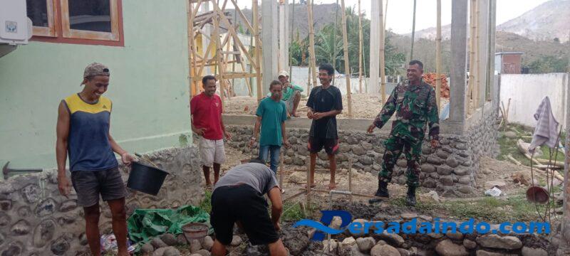 Tidak hanya hadir untuk menjalin silaturahmi, Babinsa juga ikut turun langsung membantu proses pembangunan. Kehadirannya menjadi wujud nyata kepedulian TNI kepada masyarakat serta bukti bahwa Babinsa senantiasa hadir memberikan dukungan baik moril maupun tenaga.
