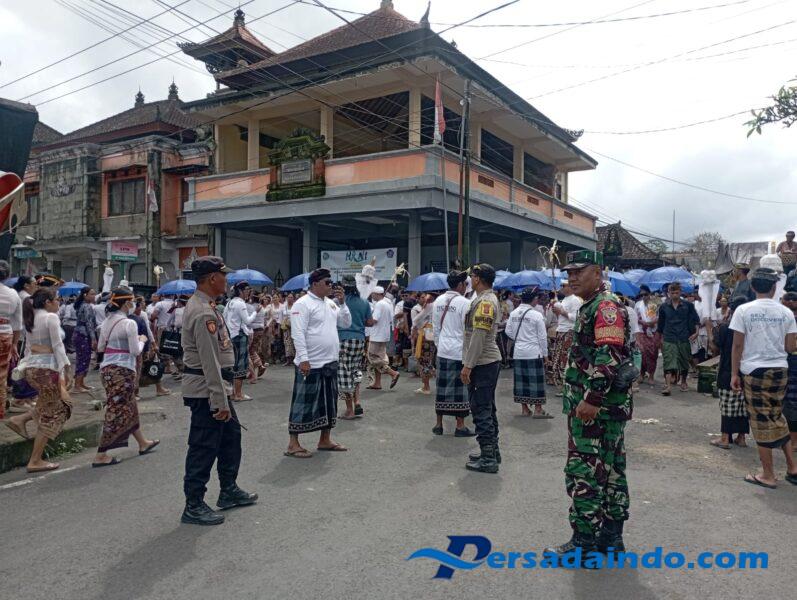 Babinsa bersama unsur keamanan turut aktif mengatur arus lalu lintas dan menjaga ketertiban selama prosesi berlangsung di sepanjang jalur Manukaya Anyar menuju lokasi pesiraman, guna memastikan rangkaian upacara berjalan aman, tertib, dan lancar.