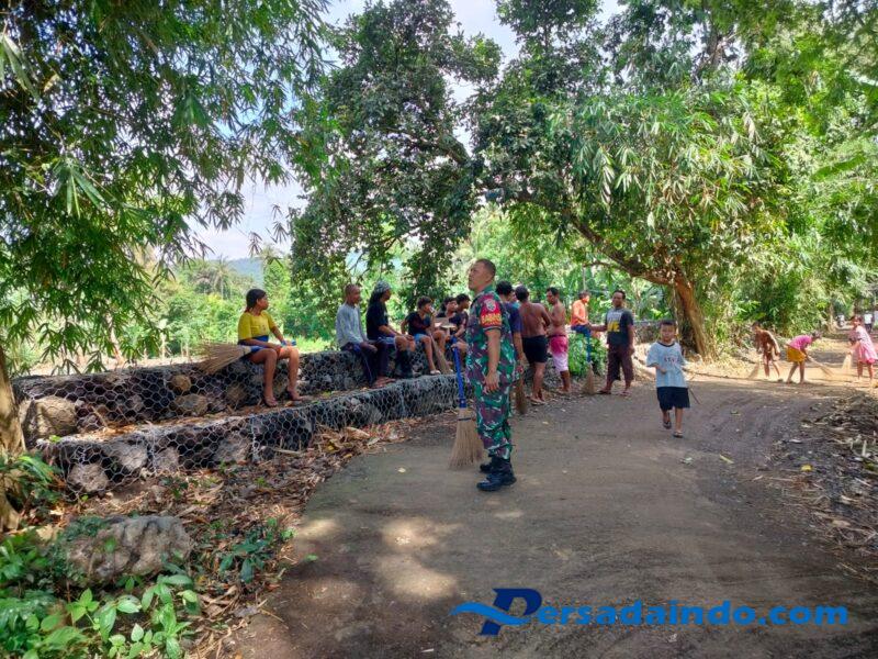 • Babinsa Melaksanakan Kegiatan Gotong Royong Bersama Masyarakat di Wilayah Binaan