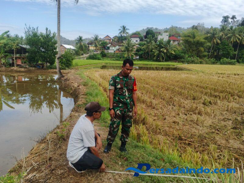 Sumbawa Barat, NTB – Babinsa Desa Moteng, Koramil 1628-02/Sekongkang, Serda Muhaimin melaksanakan kegiatan pendampingan bersama staf Desa Moteng dalam pengukuran tanah petak sawah milik warga, Senin (15/09/2025).