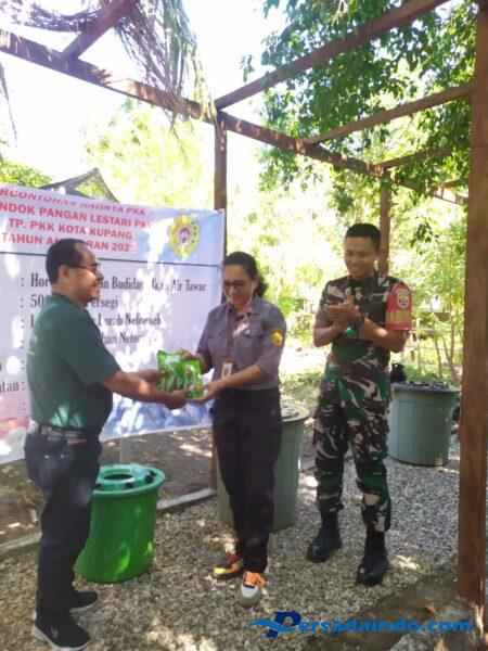 NTT-KUPANG, – Dalam upaya mendukung ketahanan pangan di wilayah, Babinsa Kelurahan Nefonaek Koramil 1604-01/Kupang, Serda Putu Juni Arsana menghadiri kegiatan penyerahan bantuan bibit tanaman dan pupuk kepada para Ibu PKK. Kegiatan ini dilaksanakan di RT 022 RW 007, Kelurahan Nefonaek, Kecamatan Kota Lama, Kota Kupang, dan dihadiri oleh Wakil Ketua PKK Kota Kupang serta perwakilan dari Dinas Pertanian Sabtu (21/06/2025).