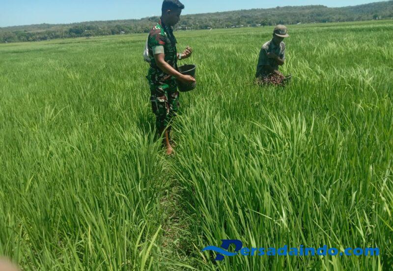 • Babinsa Pahunga Lodu Terjun ke Sawah, Dampingi Petani Pemupukan Padi