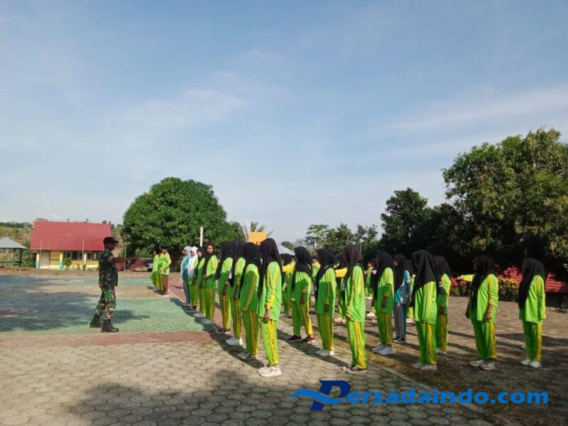 Kegiatan ini berlangsung di *lapangan sekolah MAN 3 Sumbawa*, Kecamatan Empang, Kabupaten Sumbawa, dengan diikuti oleh puluhan siswa yang tampak antusias mengikuti setiap arahan dan latihan dari Sertu Herman.