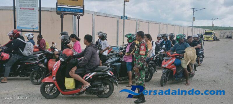 Rote Ndao, 5 November 2025 – Dalam rangka menjaga keamanan dan ketertiban di wilayah binaan, Babinsa Koramil 1627-02/Pantai Baru, Sertu Camilo Desousa, melaksanakan kegiatan pengamanan keberangkatan kapal KM Garda Maritim 3 di Pelabuhan Pantai Baru, Desa Ofalangga, Kecamatan Pantai Baru, Kabupaten Rote Ndao, pada Rabu (5/11/2025) pukul 07.30 Wita.