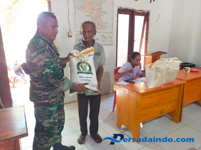 Rote Ndao – Rabu(13/8/ 2025) Bertempat di Kantor Desa Nggodimeda,kelurahan Onatali, Desa Siomeda Kecamatan Rote tengah, Kabupaten Rote Ndao Babinsa Serda Delfi Amallo kawal pembagian beras bantuan pangan .