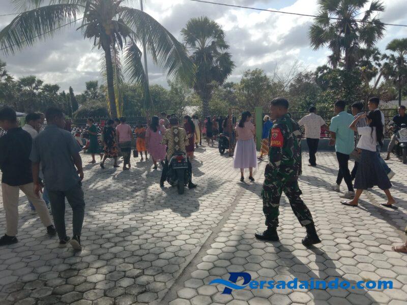 Rote Ndao – Babinsa Koramil 03/Batutua, Kodim 1627/Rote Ndao Serka Armindo Dasilva, melaksanakan tugas pemantauan wilayah sekaligus pengamanan kegiatan ibadah Minggu di Gereja GMIT Talitakumi Nggauk,Desa Sakubatun Kecamatan Rote Barat Daya Kabupaten Rote Ndao, Minggu (3/8/2025).