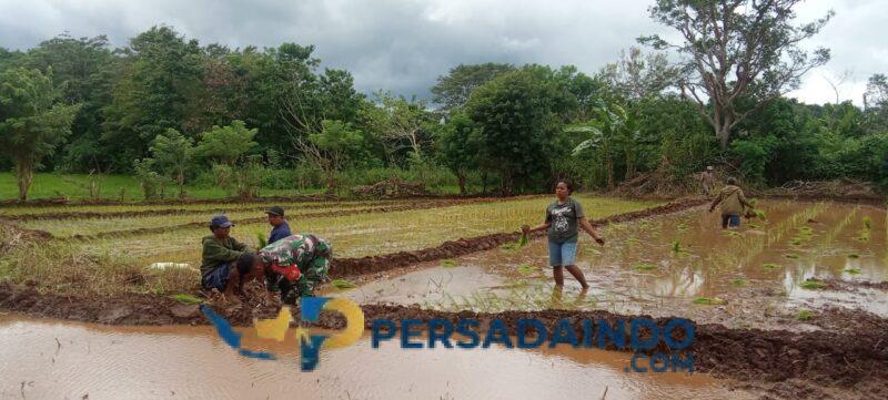NTT – Sumba Timur. Dalam rangka mendukung ketahanan pangan dan meningkatkan kesejahteraan masyarakat, Babinsa Koramil 01/Lewa Kodim 1601/Sumba Timur, Praka Stepanus Ndapa Taka, melaksanakan pendampingan kepada petani padi di Desa Bidi Praing, Kecamatan Lewa Tidahu, Kabupaten Sumba Timur, Sabtu (17/01/2026).