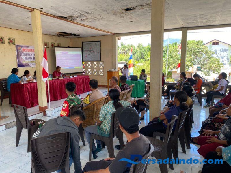 NTT-SIKKA. Babinsa Koramil 1603-04/Kewapante Kodim 1603/Sikka, Pratu Yongki Alexander Tnunai, melaksanakan kegiatan Musyawarah Rembuk Stunting Tahun 2025 yang digelar di Aula Kantor Desa Waiara, Kecamatan Kewapante, Kabupaten Sikka, Jumat(12/9/2025).