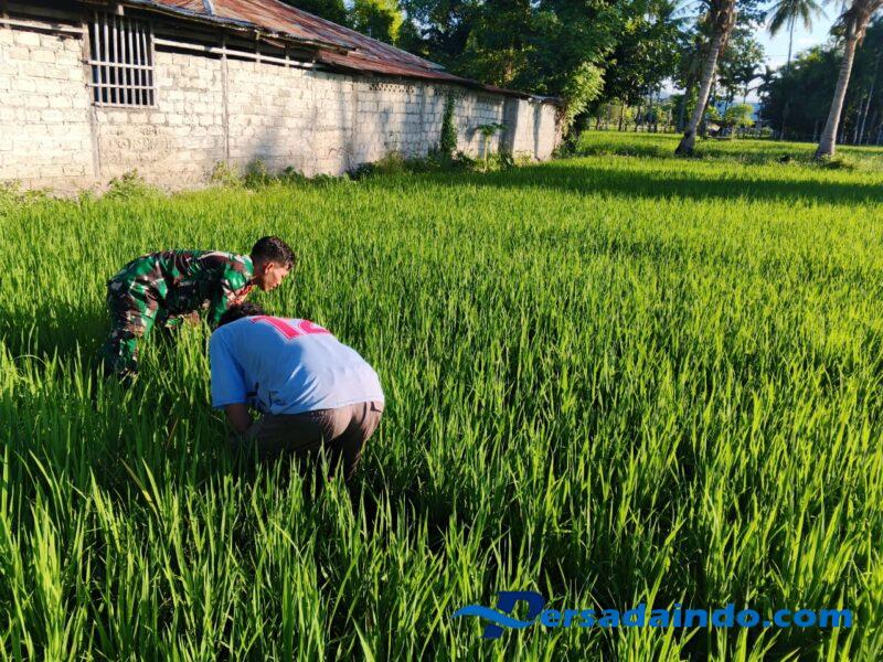 NTT-Sumba Timur, Babinsa Koramil 02/Rindi Umalulu, Kodim 1601/Sumba Timur, Pratu Edwan Yewang, terus menunjukkan komitmennya dalam mendukung ketahanan pangan di wilayah binaan dengan turun langsung ke sawah membantu para petani membersihkan gulma pada tanaman padi di Desa Mutungeding, Kecamatan Umalulu, Kabupaten Sumba Timur.pada Senin (30/06/2025).