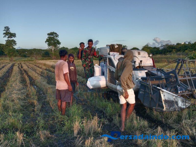 Sudah menjadi komitmen kami untuk mendampingi para petani, ikut membantu mereka mulai dari penanaman padi sampai dengan panen sekarang ini, ungkap Babinsa Pratu Ardiamos.