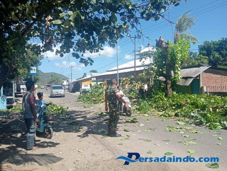 Dompu, NTB –Sebagai wujud kepedulian terhadap kelancaran aktivitas masyarakat dan upaya menciptakan situasi kondusif di wilayah binaannya, Babinsa Desa Sawe, Koramil 1614-03/Hu’u Kodim 1614/Dompu, Serda Adi Putra, melaksanakan pendampingan dan pengamanan kegiatan penebangan pohon oleh petugas PLN di Dusun Sawe, Desa Sawe, Kecamatan Hu’u, Kabupaten Dompu,Kamis (19/6/2025).