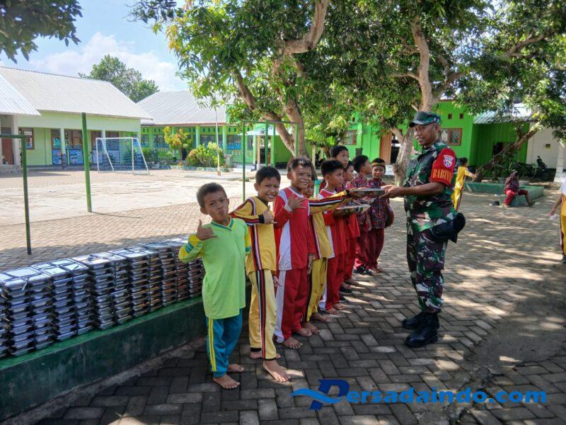 Sumbawa Barat NTB– Anggota Koramil 1628-01/Taliwang, Babinsa Kelurahan Kuang Serka Bustanuddin, melaksanakan pendampingan kegiatan Program Makan Bergizi Gratis yang digelar di SDN 12 Kuang, Kecamatan Taliwang, Kabupaten Sumbawa Barat, Senin (15/09/2025).