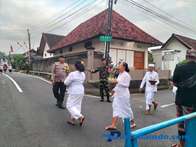 Klungkung,- Pengawalan dan pengamanan terus diberikan oleh Babinsa Semarapura Kauh Koptu Wayan Sutamaya bersama Bhabinkamtibmas dan para pecalang saat berlangsungnya upacara keagamaan piodalan di Pura Puseh Lan Bale Batur Desa Adat Budaga Kelurahan Semarapura Kauh, Kecamatan/Kabupaten Klungkung, Jumat ( 05/09/25 ).