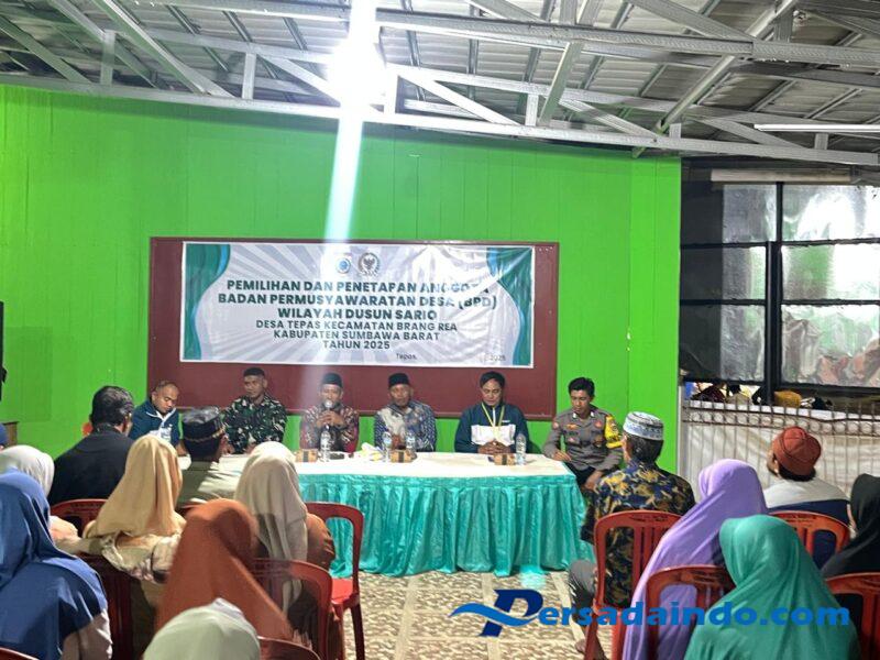 Sumbawa Barat-Pada hari Rabu, 19 November 2025 pukul 20.00 Wita, Anggota Koramil 1628-01/Taliwang, Babinsa Desa Tepas Serda Rusdiansyah, melaksanakan kegiatan pengamanan dalam rangka Pemilihan Anggota Permusyawaratan Desa (BPD) yang bertempat di Aula Kantor Desa Tepas, Kecamatan Brang Rea, Kabupaten Sumbawa Barat. Kehadiran Babinsa bertujuan memastikan seluruh rangkaian pelaksanaan pemilihan berjalan aman, tertib, dan lancar.