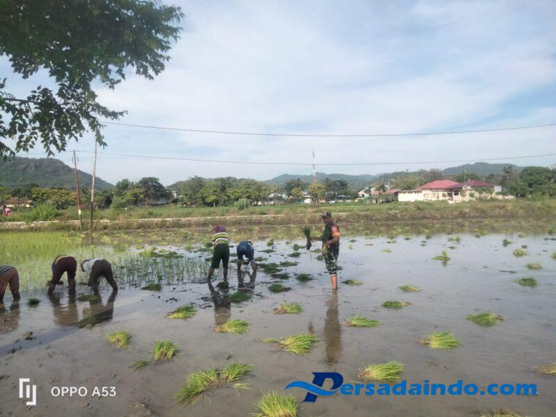 Lebih dari sekadar ikut menanam, kehadiran Serka Suhardin juga membangun komunikasi sosial yang erat dengan para petani. Canda tawa di sela aktivitas menciptakan suasana akrab yang memperkuat silaturahmi antara aparat TNI dan warga.