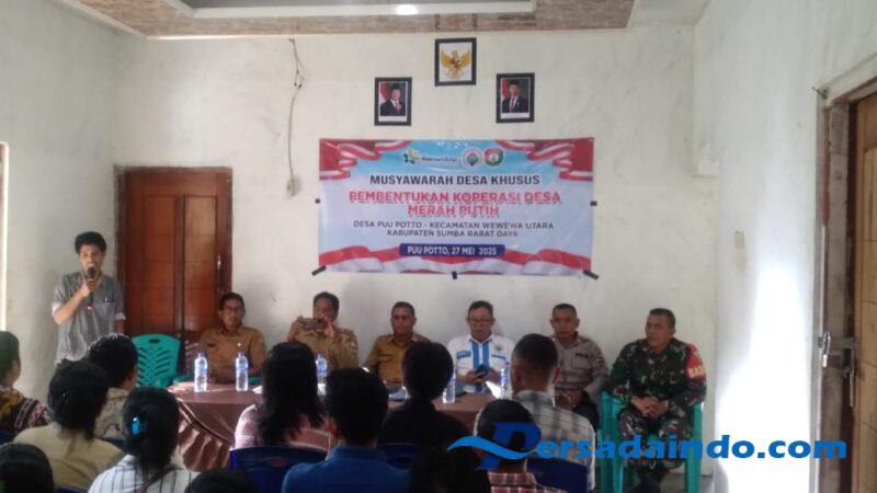 Dalam upaya meningkatkan kesejahteraan masyarakat desa melalui penguatan ekonomi kerakyatan, Babinsa Koramil 01/Laratama Kodim 1629/SBD, Serka Wayan Kokar menghadiri Musyawarah Desa Khusus (Musdesus) yang digelar untuk pembentukan Koperasi Merah Putih di desa Puupotto, Kecamatan Wewewa Utara, Kabupaten Sumba Barat Daya. Selasa (27/05/2025).