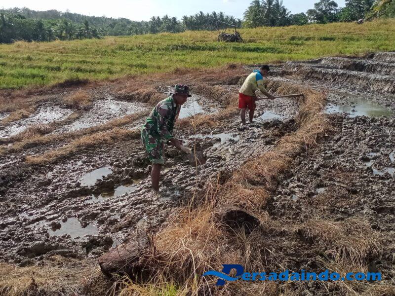 Selain membantu pemaculan pematang, Babinsa juga berdialog dengan petani lainnya untuk menggali kendala yang dihadapi serta memberikan motivasi agar lahan pertanian terus dimanfaatkan secara optimal.