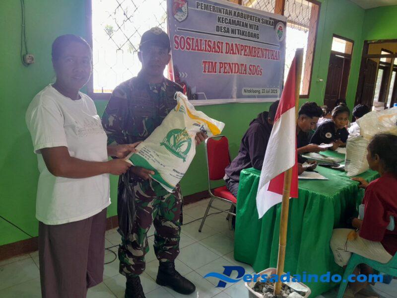 NTT-SIKKA Babinsa dari Koramil 1603-01/Alok Kodim 1603/Sikka, Sertu Florindo Benedito, melakukan pendampingan dalam proses penyaluran bantuan pangan berupa beras untuk masyarakat Desa Nitakloang, Kecamatan Nita, Kabupaten Sikka, Kamis(31 Juli 2025).