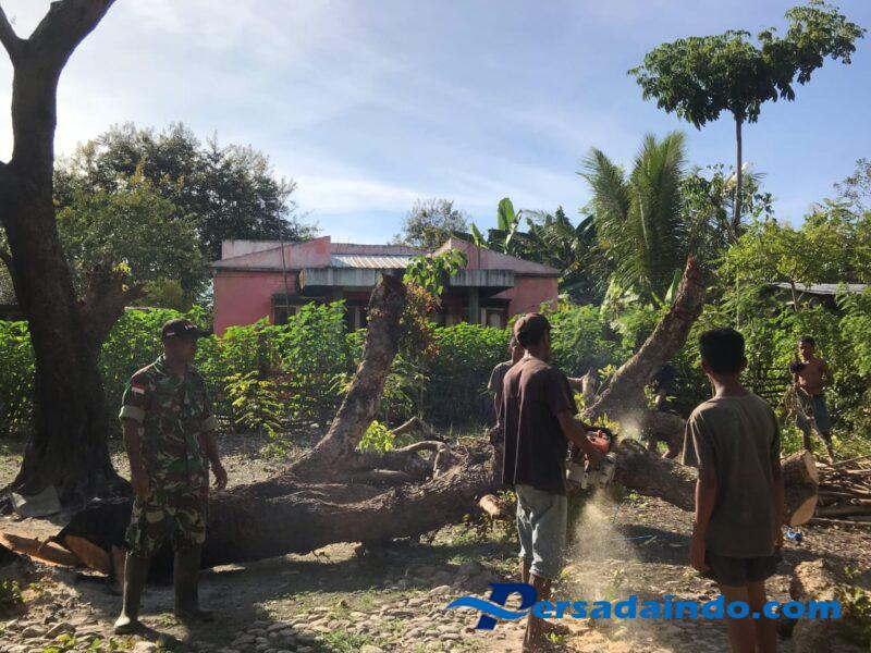 Melihat itu, Sertu Francisco Ena langsung bergabung, menunjukkan betapa eratnya hubungan Babinsa dan masyarakat. Tanpa ragu, ia memegang alat dan membantu warga menumbangkan pohon-pohon besar, memperlancar aktivitas warga setempat.