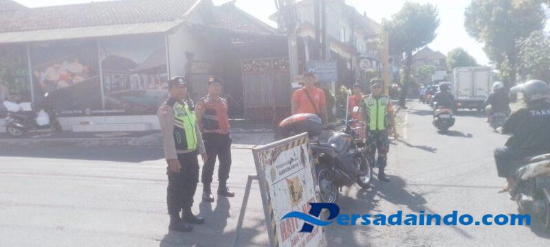 Gianyar – Sukawati, Rabu (17/9/2025) Babinsa Desa Celuk Koramil 1616-05/Sukawati Sertu I Komang Kamaryana bersama Bhabinkamtibmas Ipda I Made Diarta serta Pecalang Desa Adat Celuk melaksanakan kegiatan pengamanan dan pengaturan lalu lintas dalam rangka Upacara Ngaben salah satu tokoh agama setempat, Jro Mangku Anggarkasa, di Desa Adat Celuk, Kecamatan Sukawati, Kabupaten Gianyar.