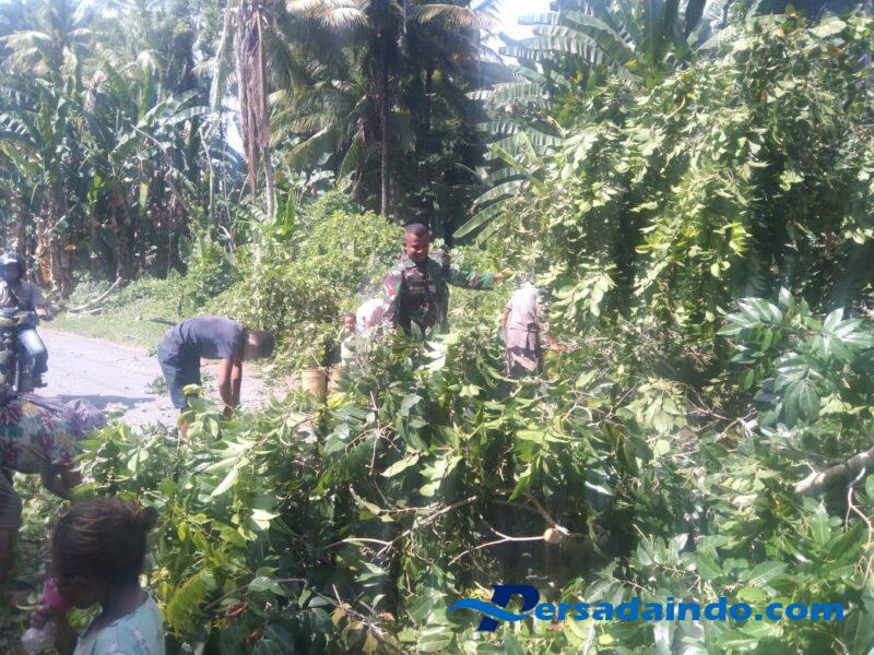 Melihat kondisi tersebut, Babinsa bersama warga secara sigap turun langsung ke lokasi untuk melakukan pembersihan dan pemotongan ranting pohon menggunakan alat seadanya. Dengan kerja sama dan gotong royong, ranting pohon berhasil disingkirkan sehingga akses jalan kembali lancar.