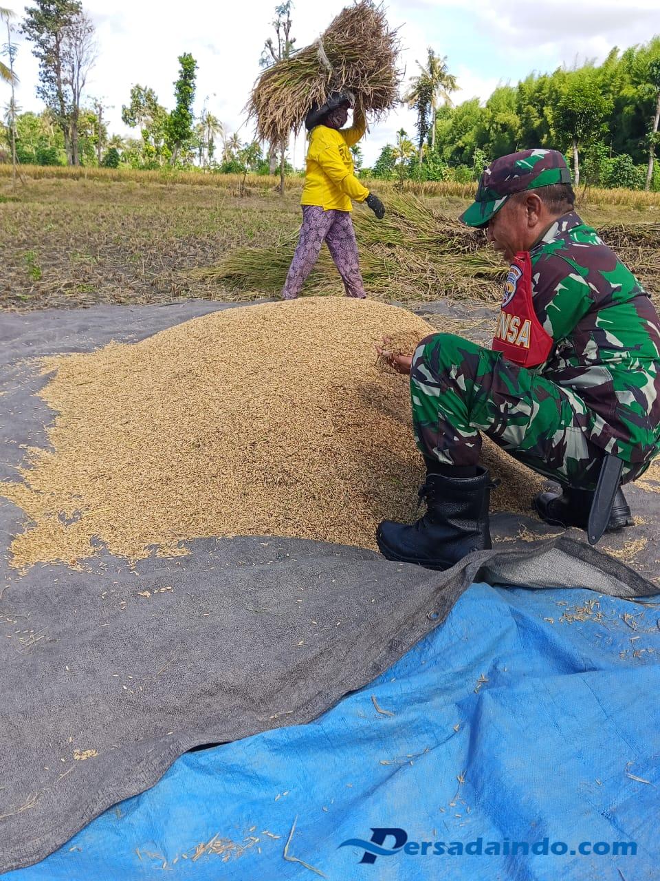 Lombok Timur – Babinsa Desa Sukadana, Sertu Rusdi dari Koramil 1615-06/Terara melaksanakan pendampingan kegiatan Satgas Sergab bersama kelompok tani (Poktan) Dile Semprong dalam rangka mendukung panen padi di wilayah binaannya, Sabtu (5/4/2025).