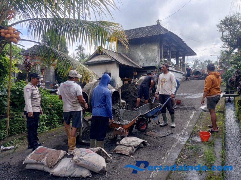 Dukung terwujudnya kesejahteraan masyarakat, Babinsa Desa Sumita, Koramil 1616-01/Gianyar, Kopka I Made Juliarta bersama Bhabinkamtibmas Desa Sumita, Aipda Putu Gede Pramita Buana, S.H., turun langsung mendampingi pelaksanaan kegiatan gotong royong perabatan jalan yang berlangsung di Banjar Melayang, Desa Sumita, Kecamatan Gianyar, Kabupaten Gianyar.