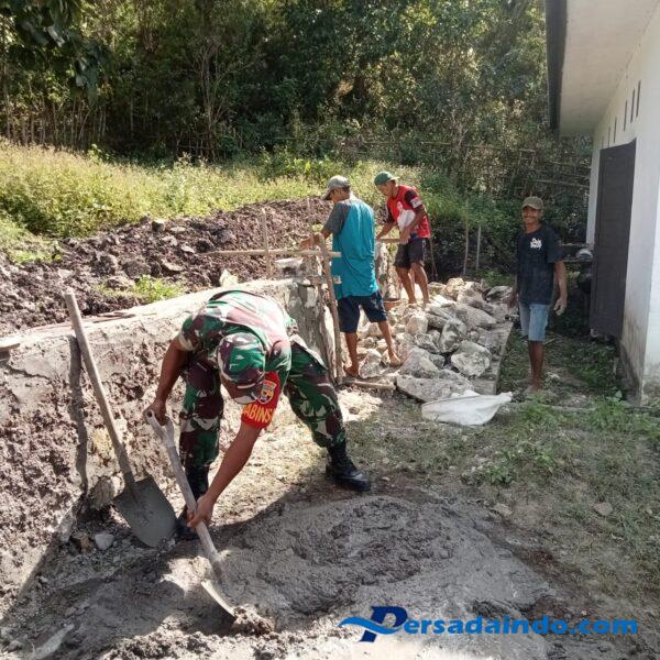 NTT – Sumba Timur. Babinsa Koramil 04/Tabundung, Kodim 1601/Sumba Timur Sertu M. Jaini bersama warga binaan bahu-membahu melaksanakan gotong-royong pembuatan tanggul penahan air dan lumpur bertempat di Desa Wudipandak, Kecamatan Tabundung, Kabupaten Sumba Timur. Selasa (29/07/2025)