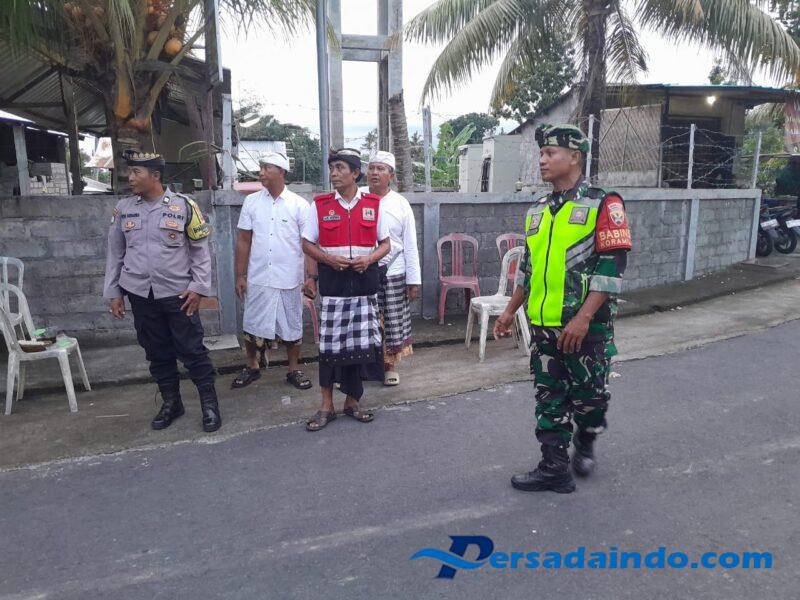 Kegiatan piodalan itupun tak luput dari pengawalan dan pengamanan dari Babinsa Takmung Serka Yulianta dan Babinsa Negari Serka I Gede Adiasa dengan berkolaborasi bersama Bhabinkamtibmas dan para pecalang.